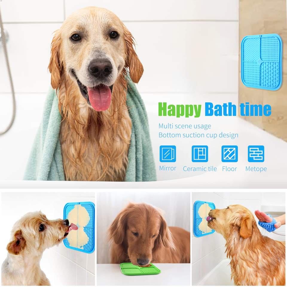 Premium Lick Pad with Suction Cups for Dog Anxiety Relief, Slow Feeder Dog Bowls,Dog Lick Mat2 Pack (Green and Blue)