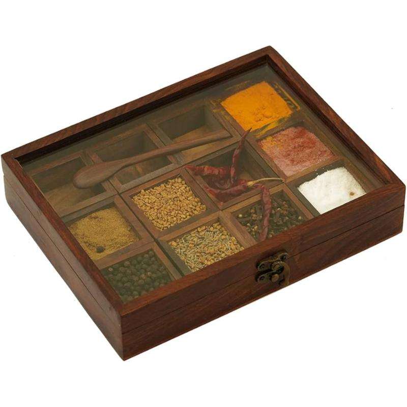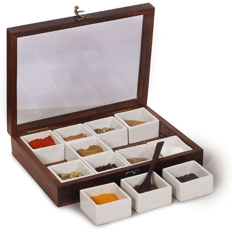 Premium Lightweight Eco-friendly Vintage Style Wooden Spice Box Lacquer Finished Herb Rack for Storage Available at Low Price