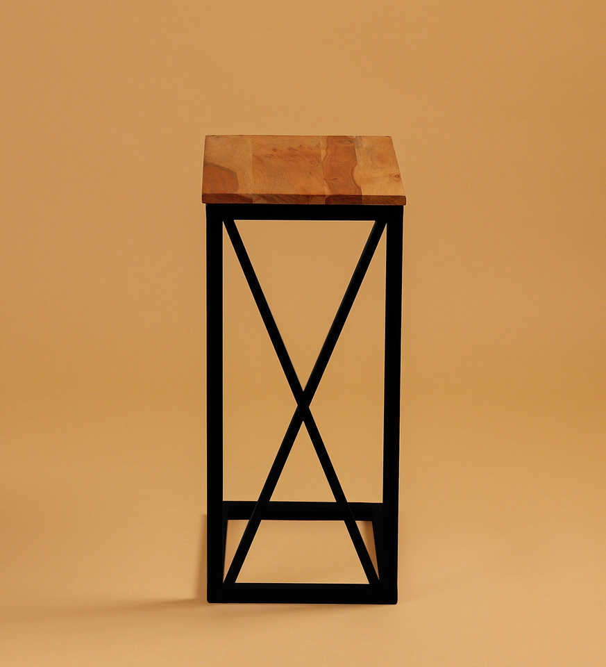 Premium Look Modern Nightstand Bedroom Furniture Accent Tables for Living Room Solid Round Wooden Top Brass Geometric Frame