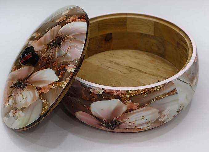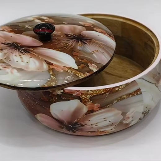 Premium Look Wooden Printed Chapati Box for Dining Table and Daily Family Use Rustic Wooden Roti Storage Box for Warm
