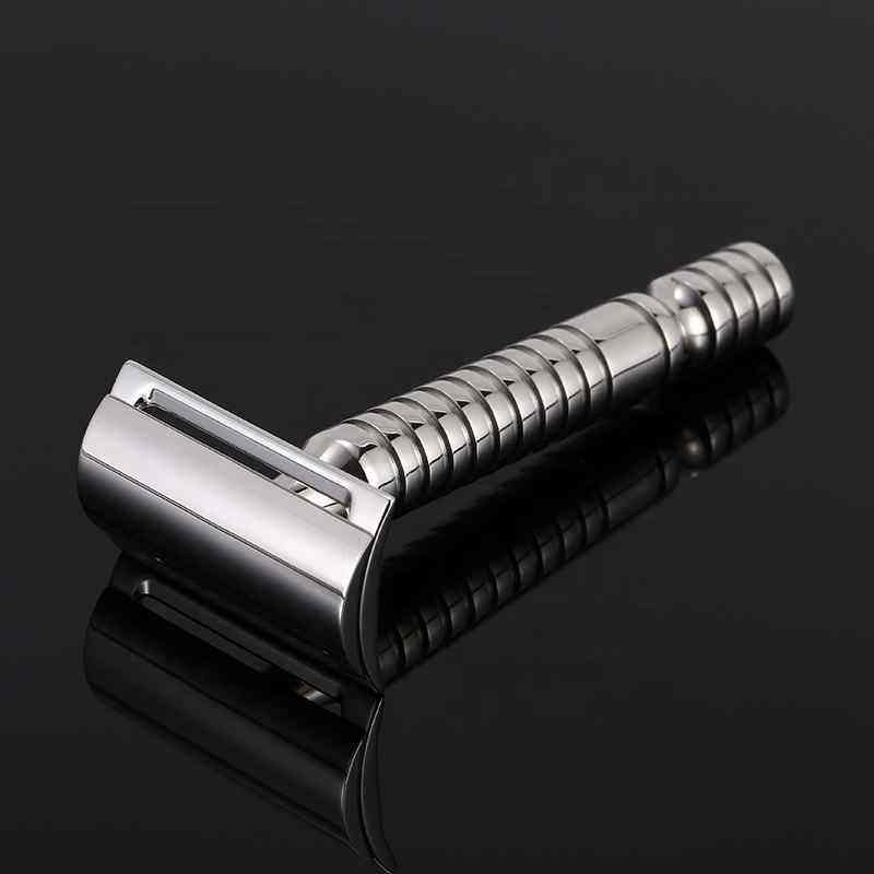 Premium Luxury Stainless Steel Safety Razor with Single Super Stainless Steel Blade Reusable Handle for Men Grooming Instruments