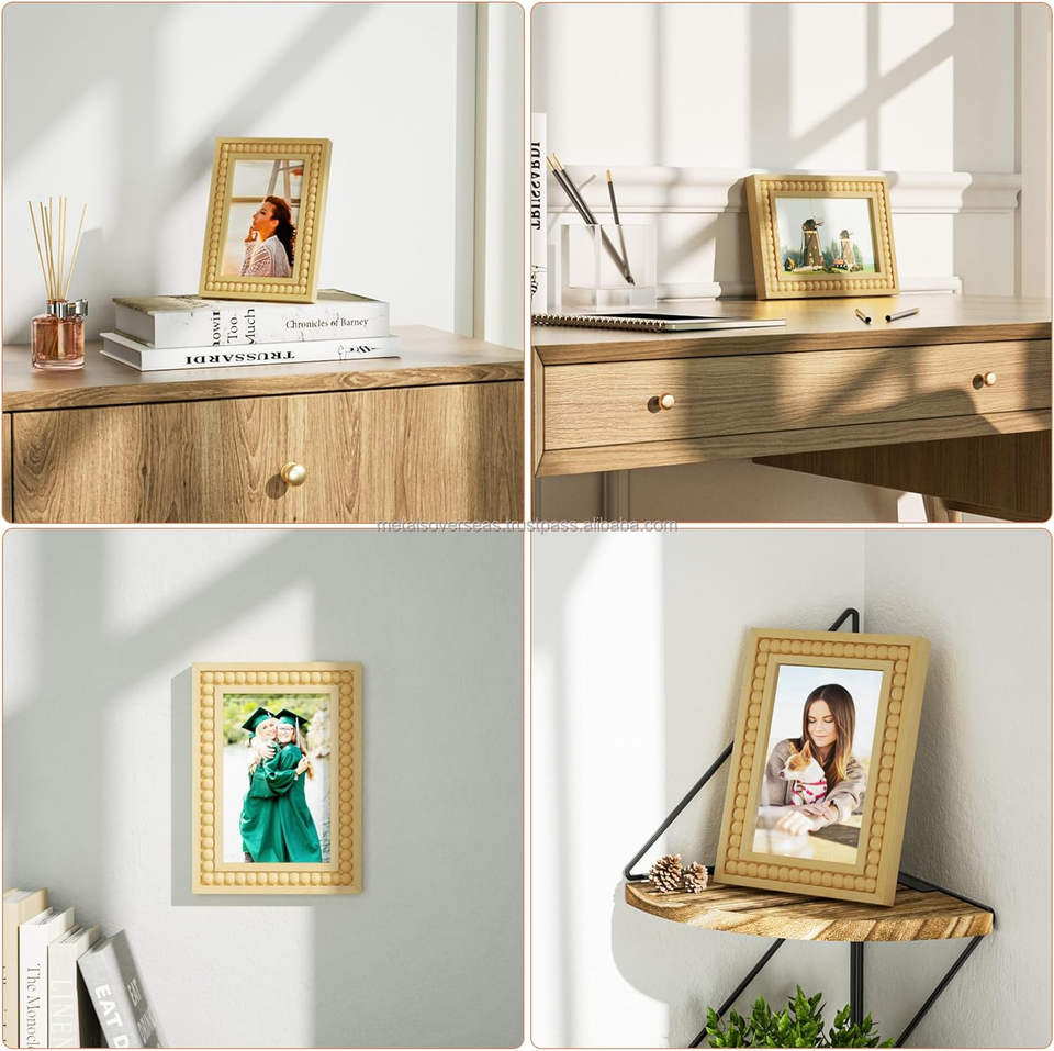 Premium Mango Wood Picture Frame With Wood Beaded Designs Wall Hanging Decorative Wooden Frame Perfect For Room And Office Decor