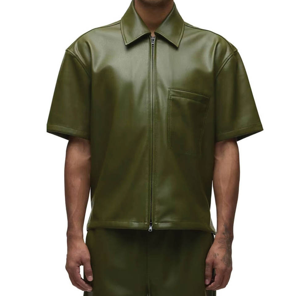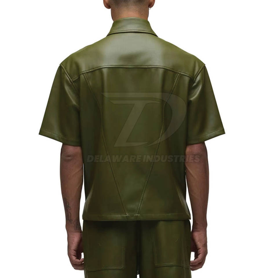 Premium Men Leather Shirt Long Sleeve Custom Logo Fashion Shirt For Club Party and Streetwear