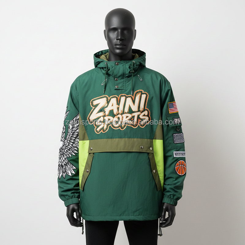 Premium Men Windbreaker Jacket Nylon Polyester Green Two Tone Panel Design Custom Chenille Windbreaker Jacket for man