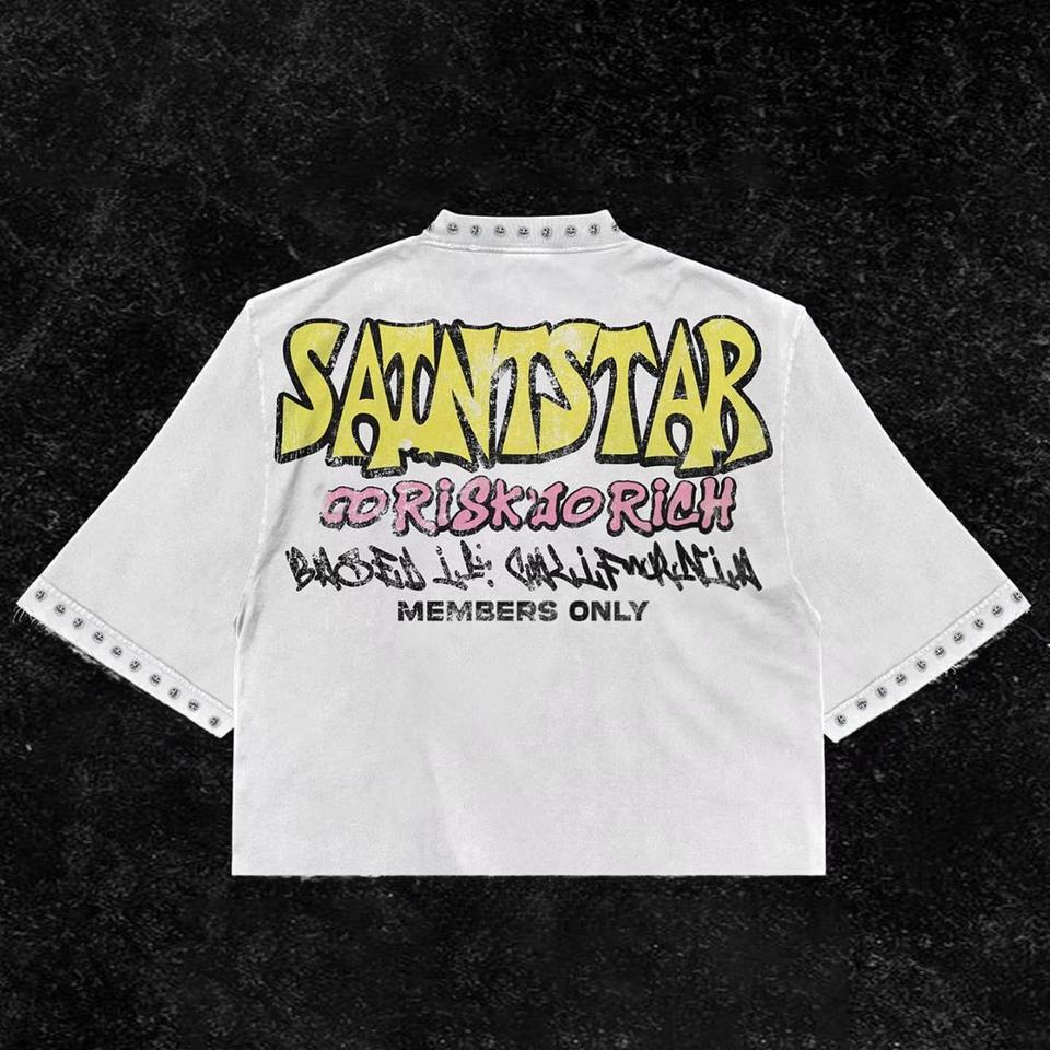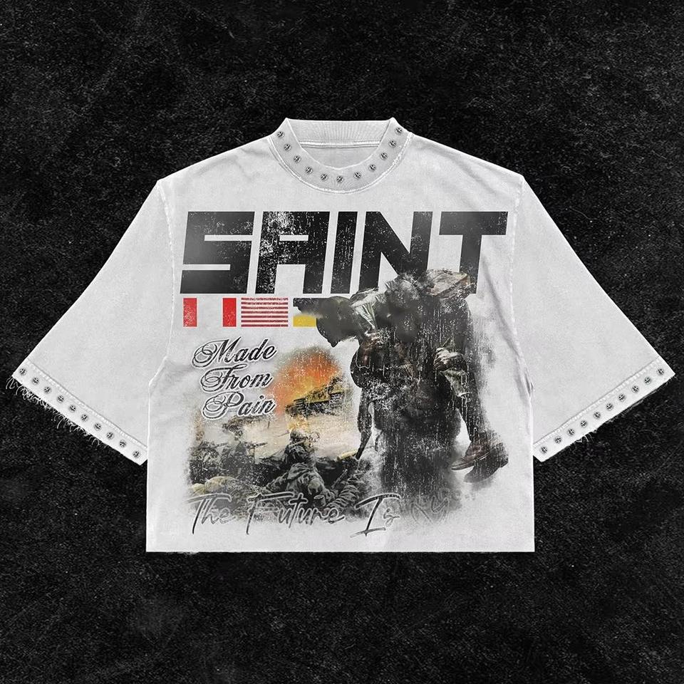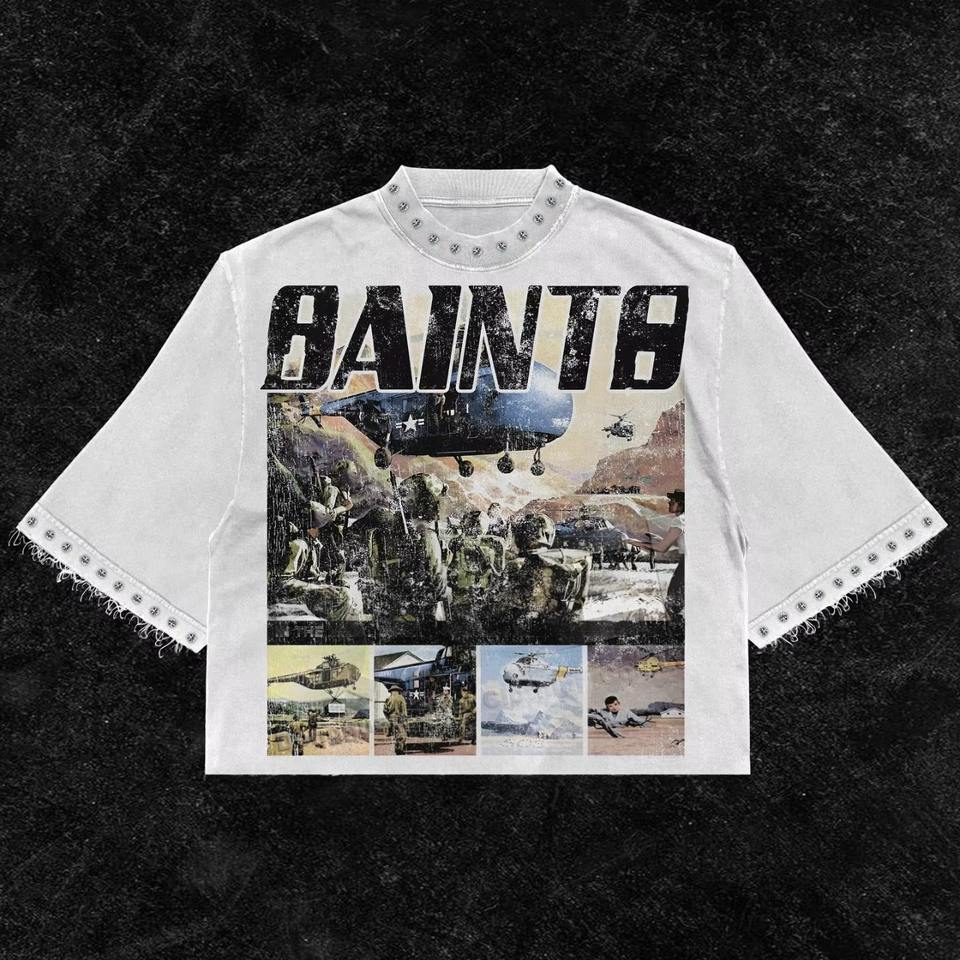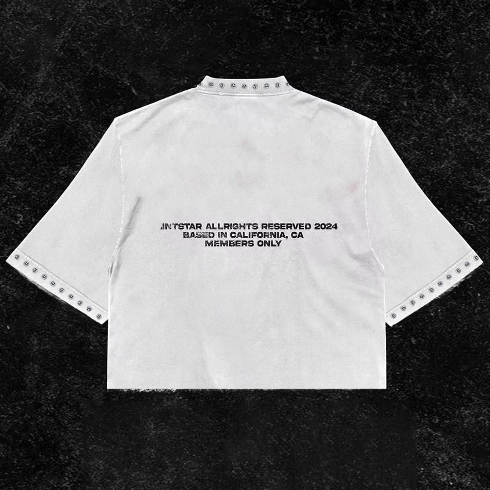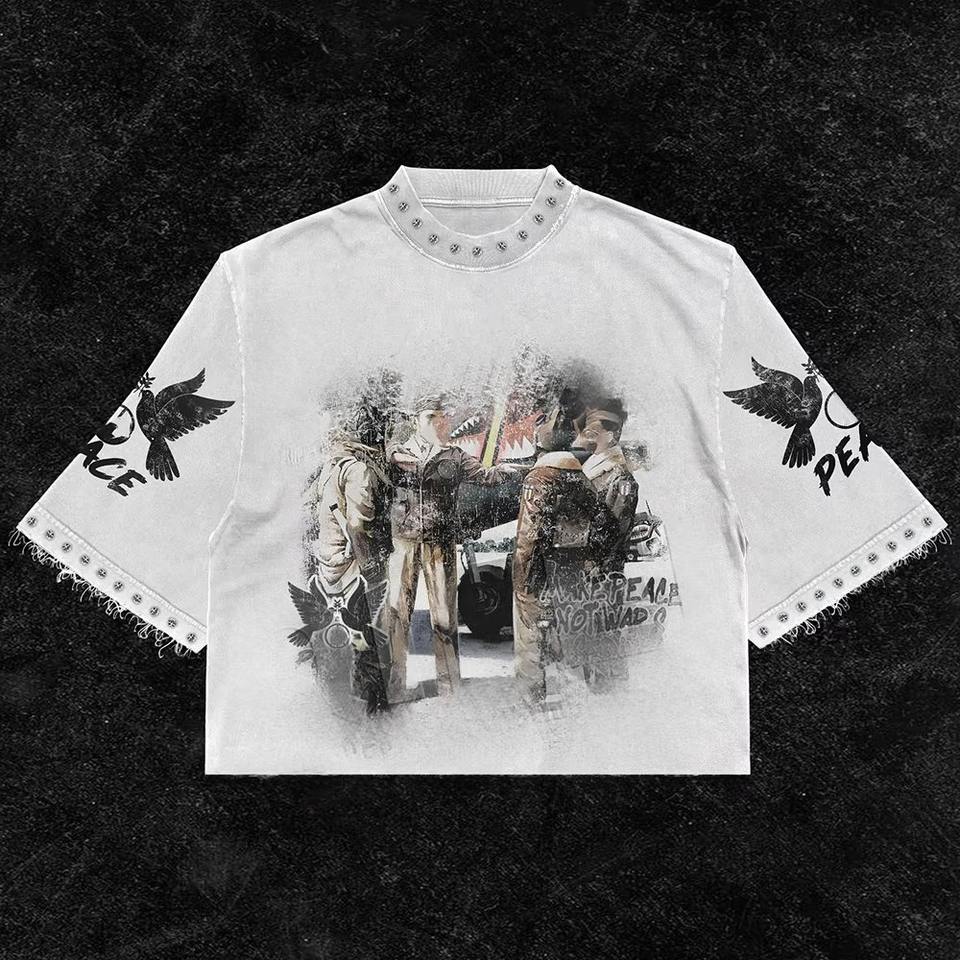 Premium Men's Custom Design Vintage Rhinestone Distressed Boxy Cropped T-Shirt Digital Print Streetwear Graphic Tee for Men