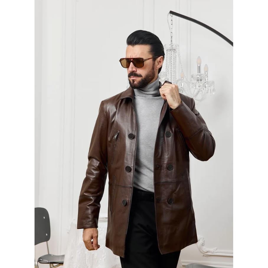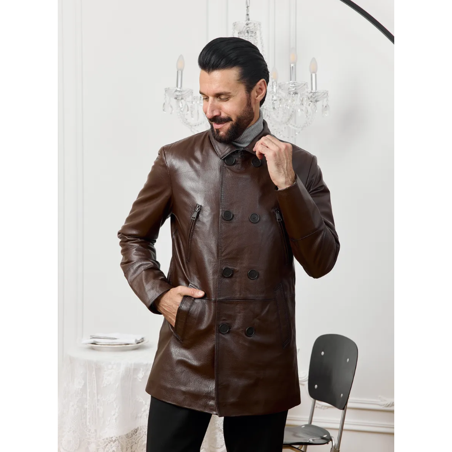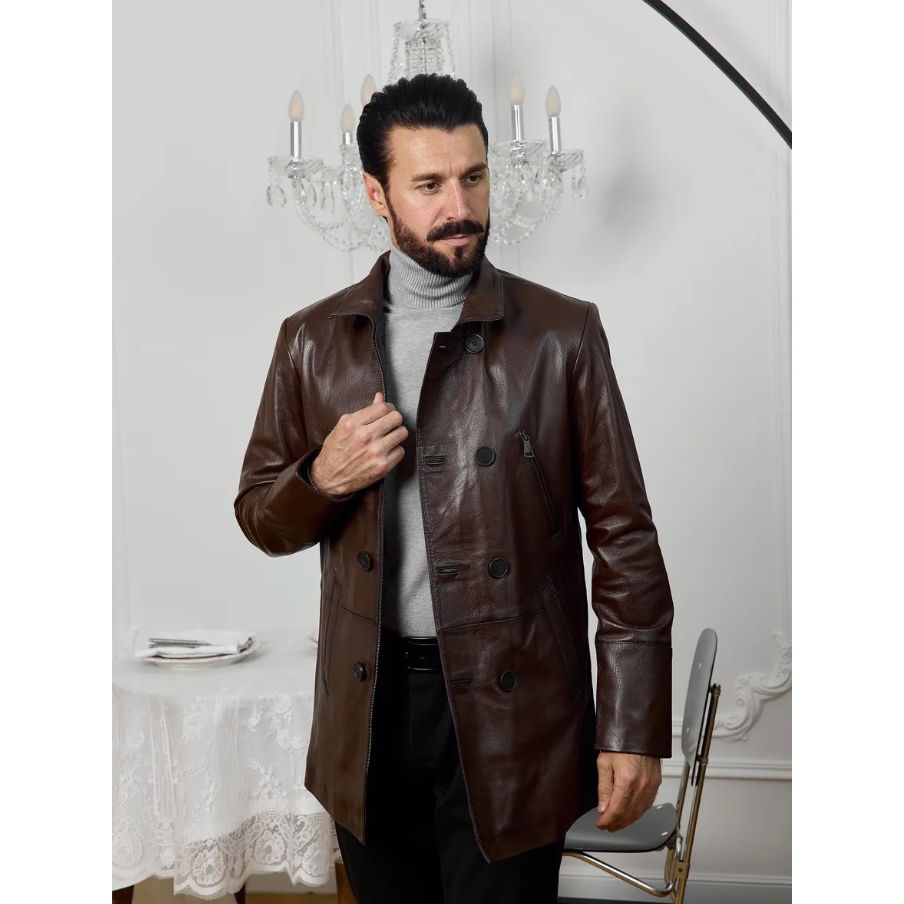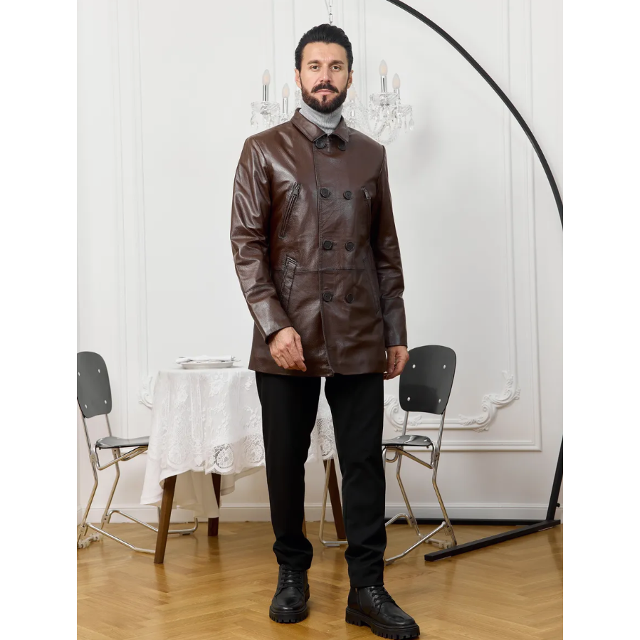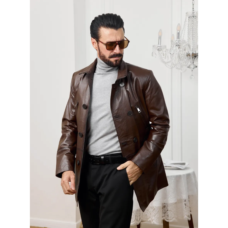 Men's Premium Full-Grain Leather Double-Breasted Lambskin Coat Structured Classic Fit Handmade Istanbul - Sizes S-3XL Customizab