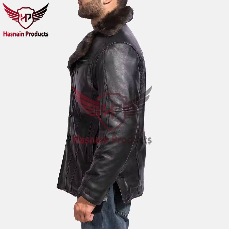 Premium Men's Furcliff Black Leather Coat: Winter Lapel Sherpa Thicken Over Jacket Men's Furcliff Black Leather Coat Winter