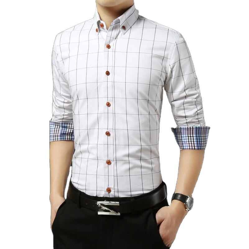 Men's Stylish Chinese Style Shirt 100% Cotton Smart Casual with Check Inserts on Collar and Cuff for Spring Summer