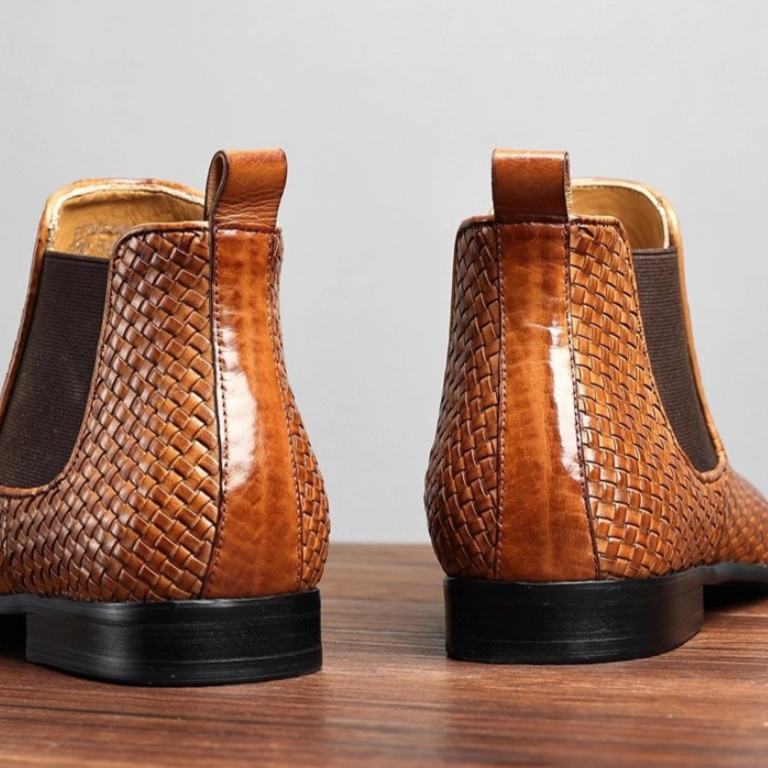 Premium Men's Round Toe Slip-On Classic Style 2025 Trendy Gradient Design Knee-High Waterproof Winter Casual Use Genuine Leather