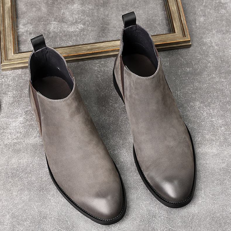 Premium Men's Round Toe Slip-On Classic 2025 Trendy Gradient Design Knee-High Waterproof Winter Casual Use Genuine Leather
