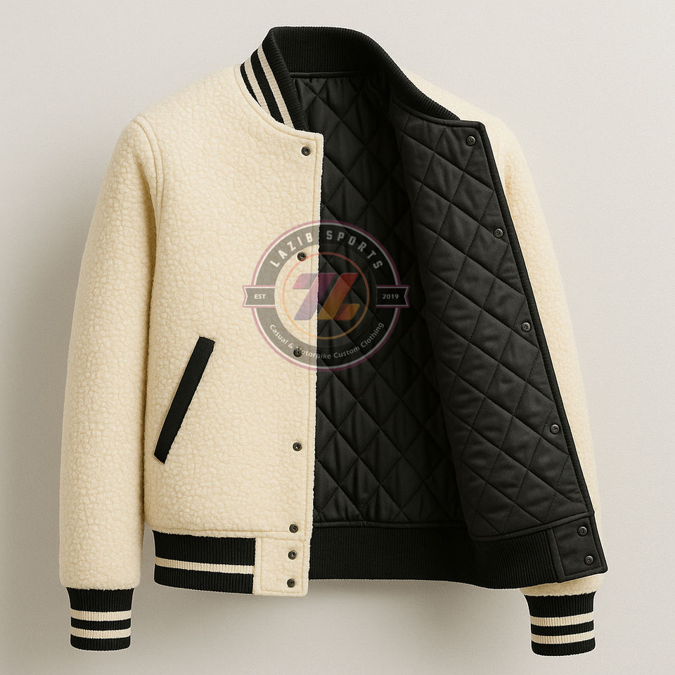 Premium Men's Sherpa Fleece Varsity Jackets Custom Wholesale Fashion Casual Street Wears Winter Sherpa Letterman Varsity Jackets