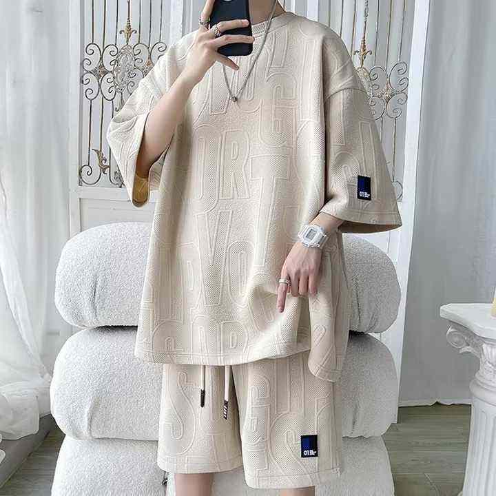 Premium Men's Summer Casual T-Shirt and Pants Set Breathable Thermal High Quality Pure Cotton Short Sleeved Washed Technique