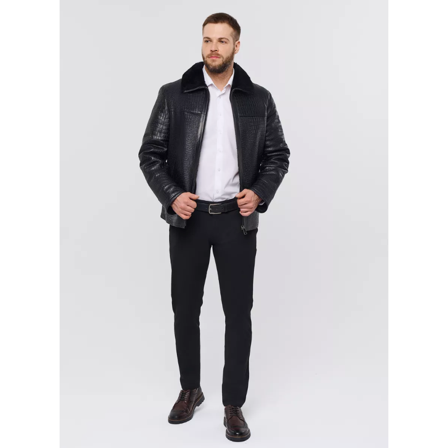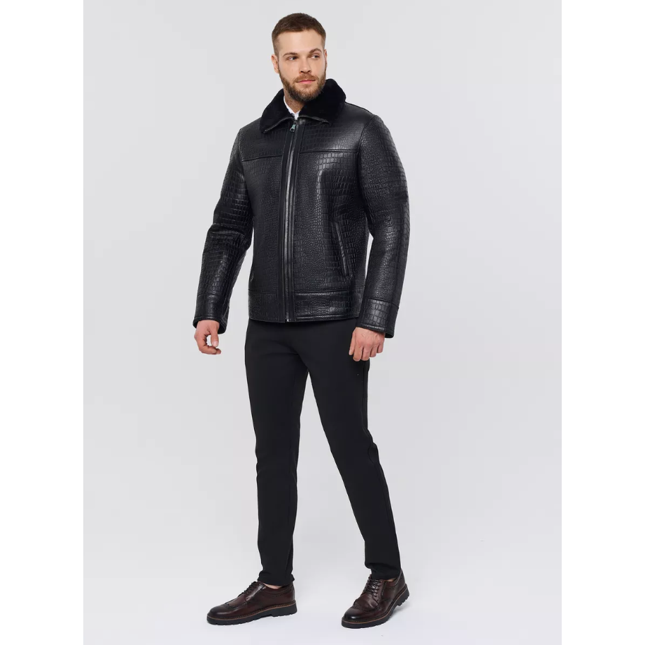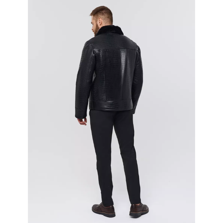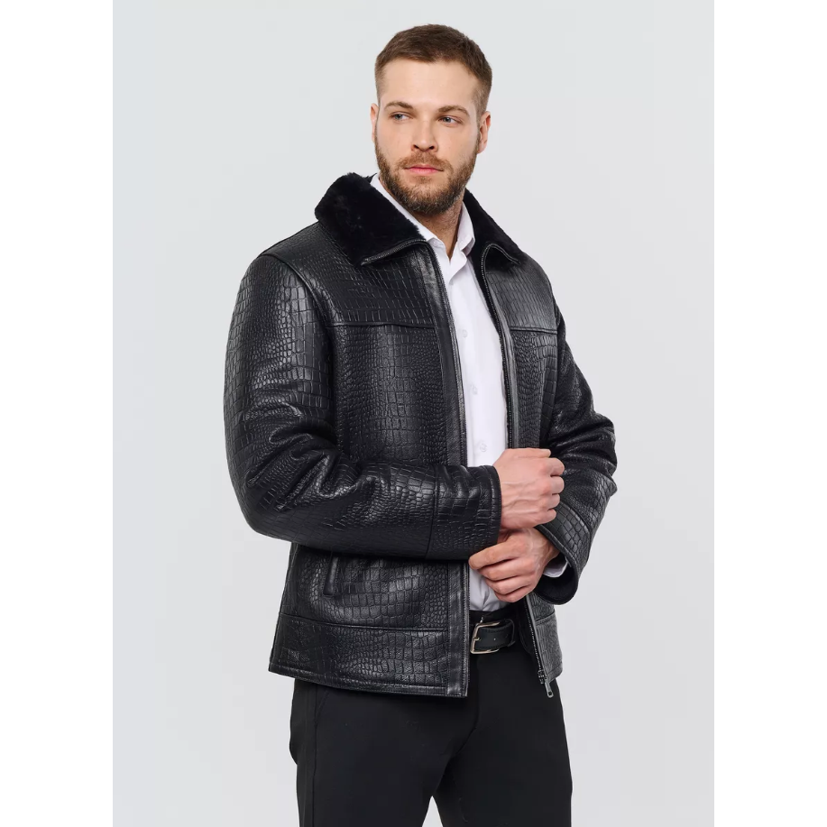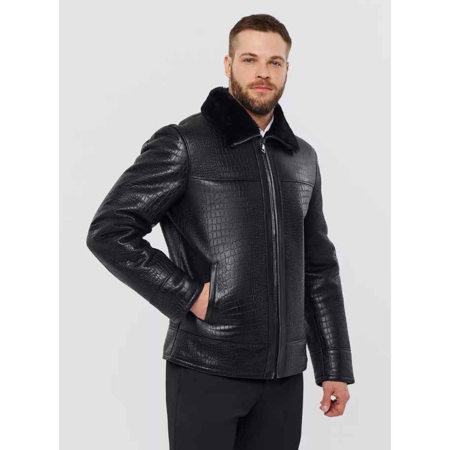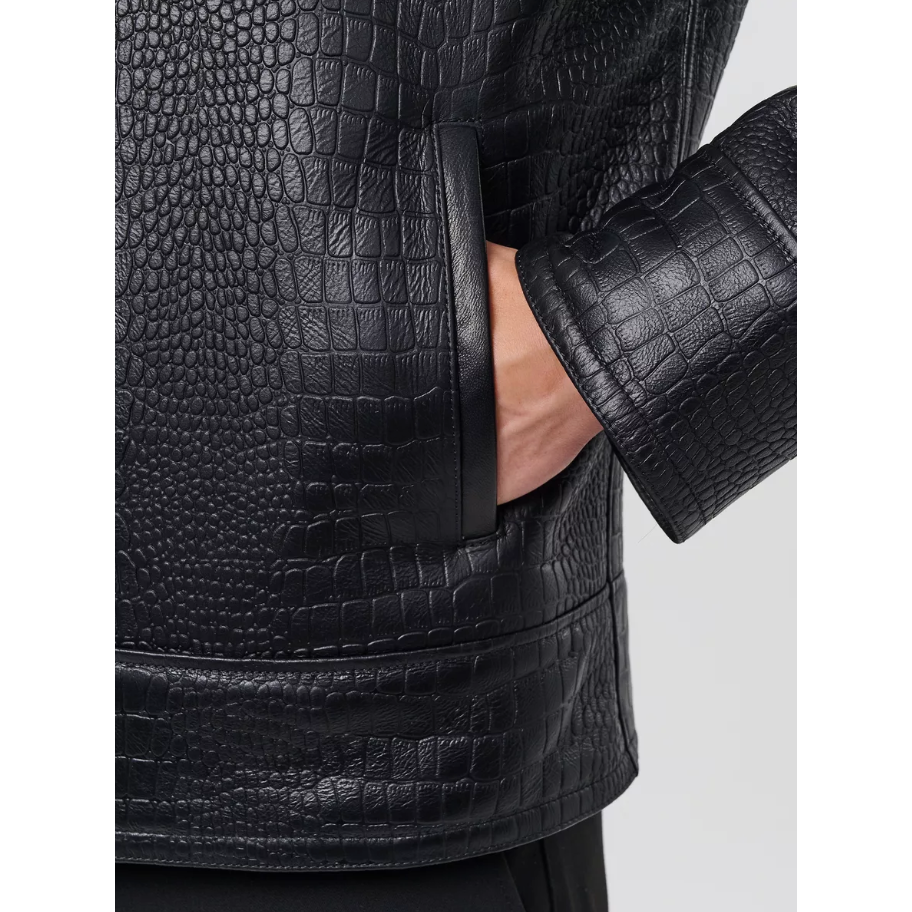 Leather Jacket – Black Croc-Embossed Shearling for Men, Wool-Lined