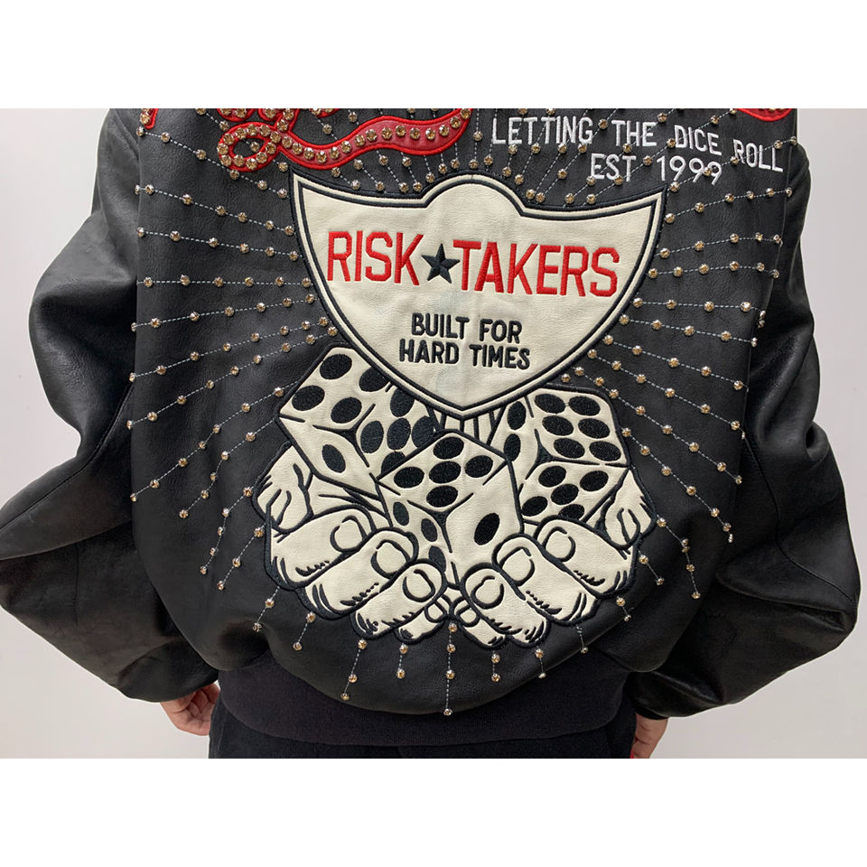 Premium Men's Winter Short Varsity Leather Jacket Customizable Rhinestones Button Collar Hooded Genuine Leather Embroidery