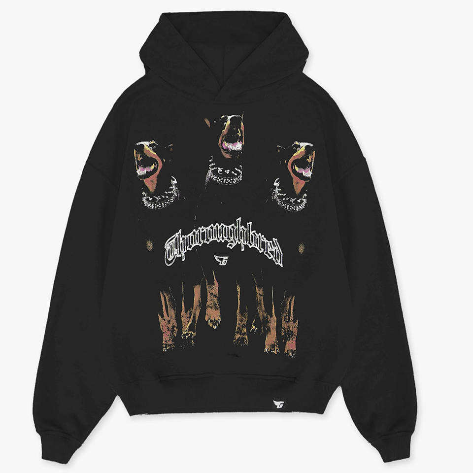 Premium Mens Black Graphic Print Hoodie Cotton Fleece Winter Pullover Streetwear Casual Fashion Sweatshirt
