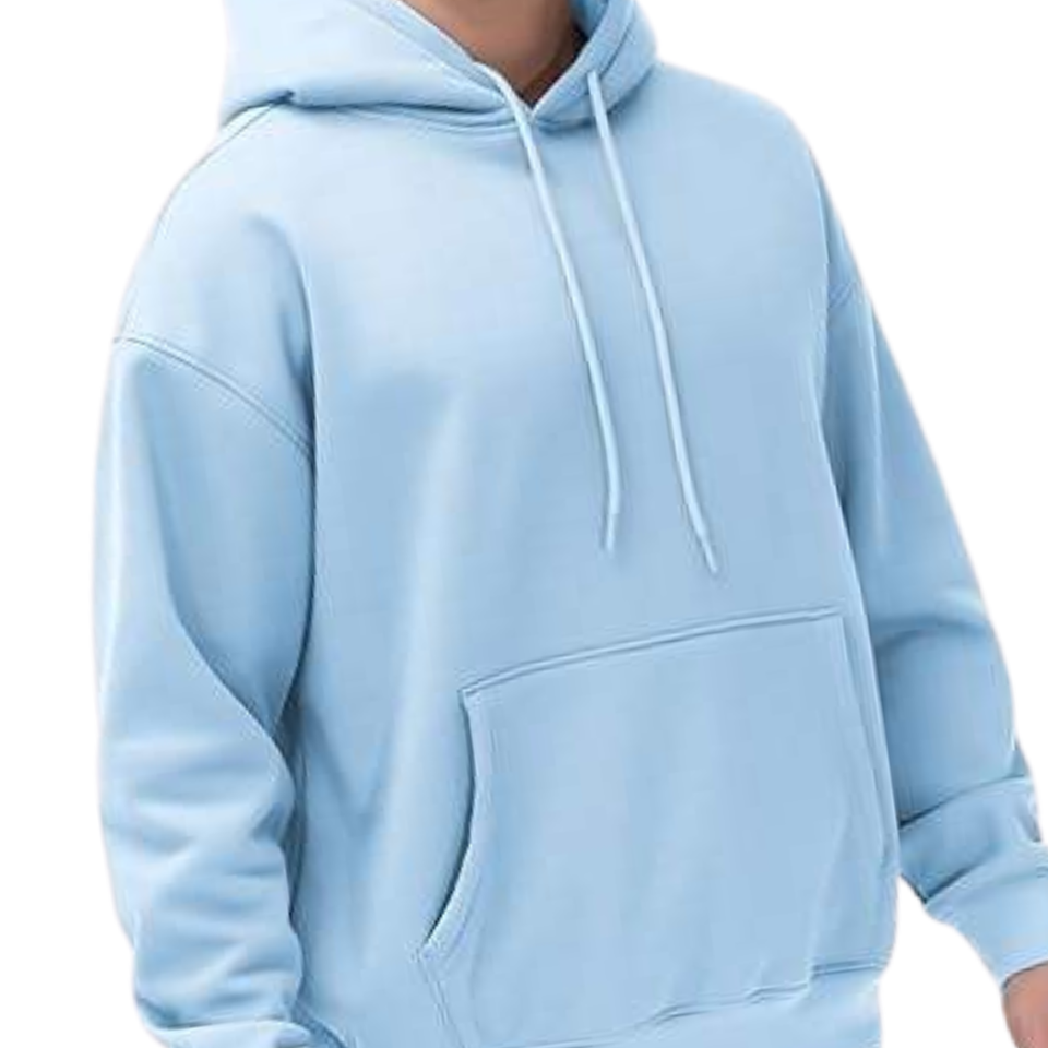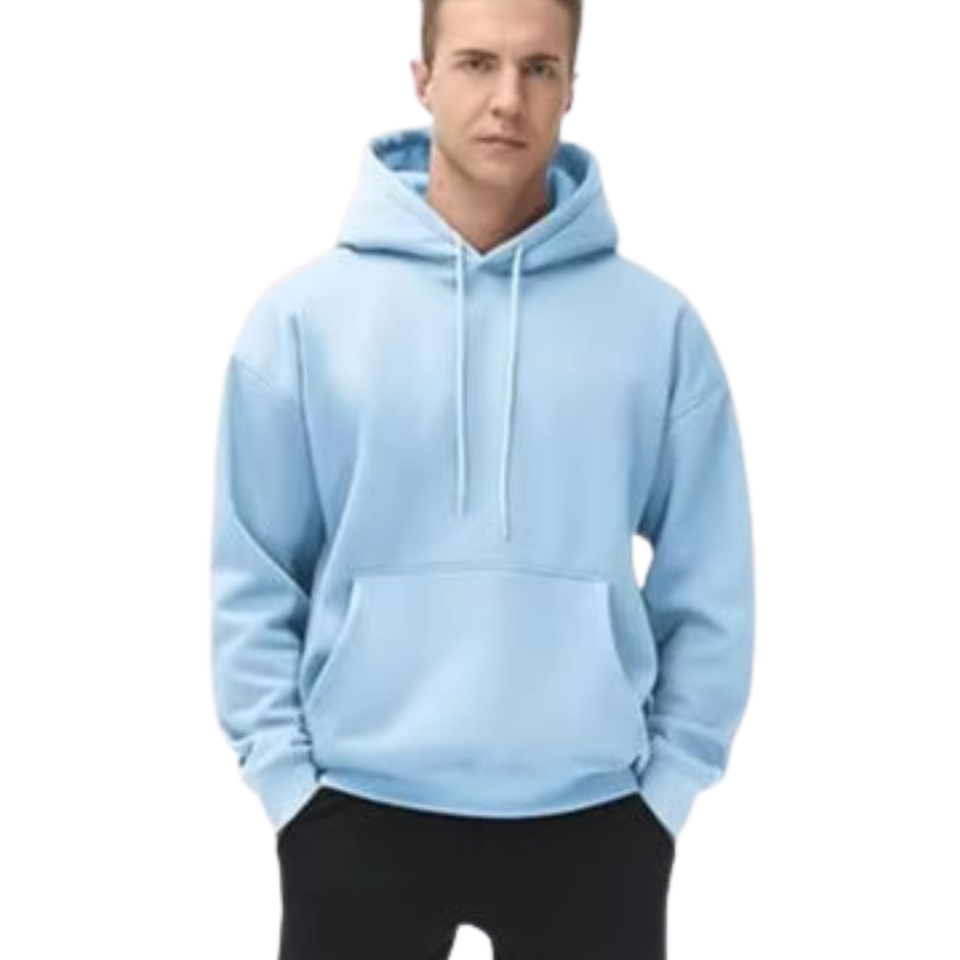 Premium Mens Oversized Plain Light Blue Hoodie Streetwear Pullover Sweatshirt Fleece Casual Hooded Top Winter Warm Outfit Hoodie
