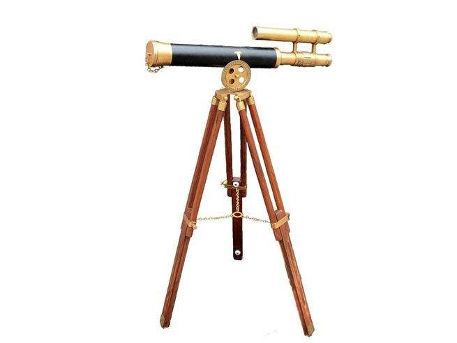 Premium Metal And Wooden Telescope Antique Nautical Spyglass Mounted On Wooden Tripod For Maritime Home Decor