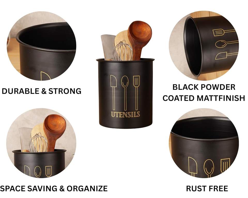 Premium Metal Cutlery Holder & Kitchen Organizer Spatula Spoon Chopstick Stand Tableware Storage for Kitchen & Dining Table