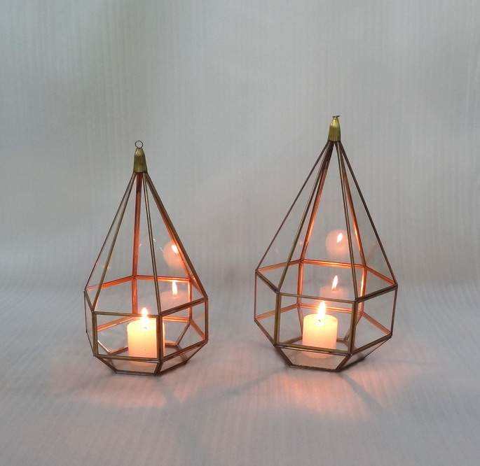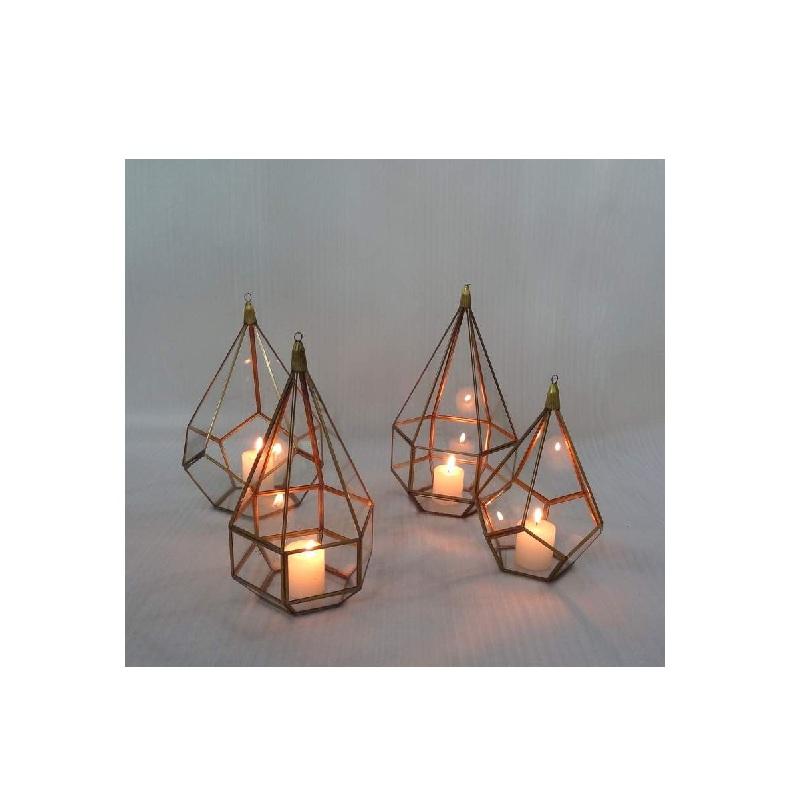 Premium Modern Fancy Set of 2 square Shape Terrarium Candle Holder with Powder Coated Finish for Home Decoration and Living Room