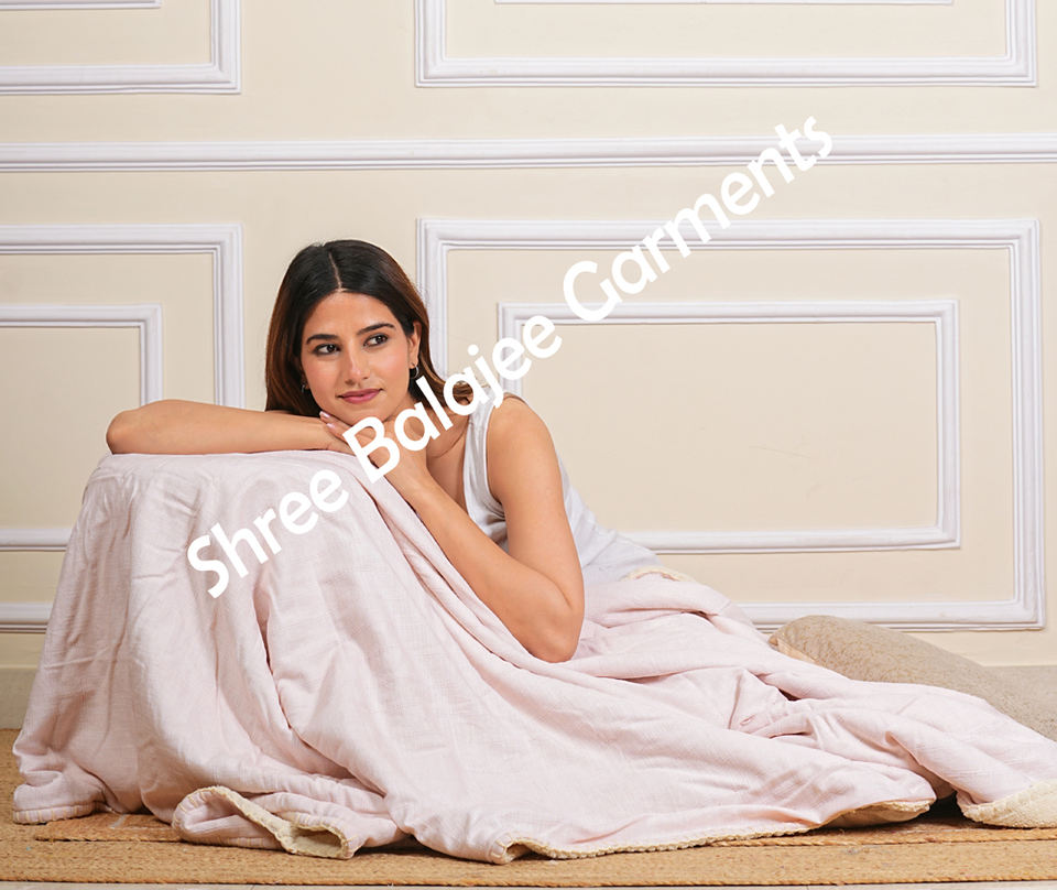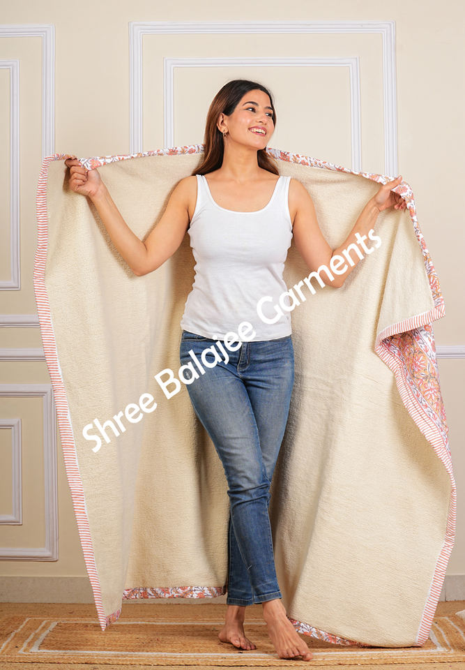 Premium Modern Handcrafted Cotton Quilt Rich Beige Reversible Sherpa Back Floral Motif Soft Cozy Bedding All Seasons Printed
