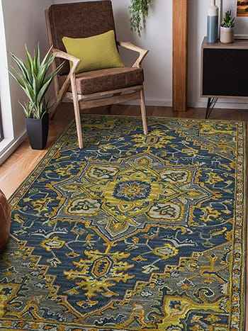 Premium Modern Traditional Medallion Design Area Rug Hand-Tufted Wool Cotton Blend Rich Navy Gold Customizable for Living Room