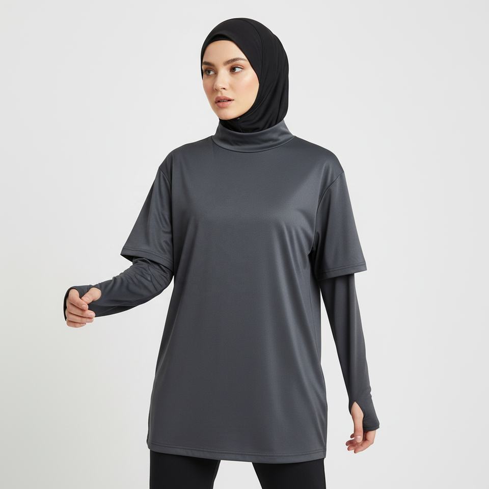 Premium Modest Muslim Womens Sports Shirt Drop Shoulder Thumbhole Sleeves Activewear Running Gym Fitness Outdoor Stylish
