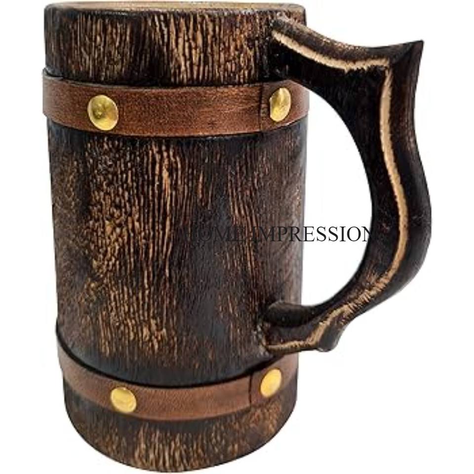 Premium Most Selling Metal Home Decor Mug With Leaf Designing Gold Polished Handles Hammered Customized Shape Table Top Beer Mug