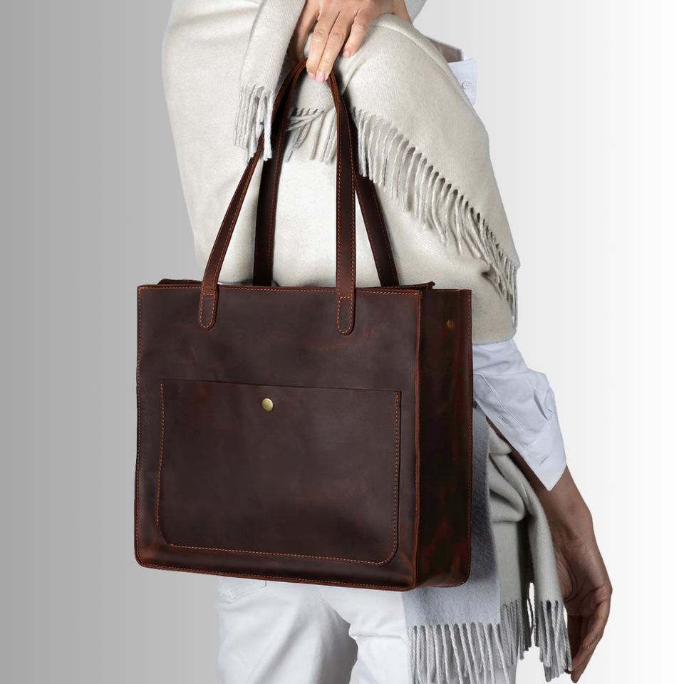 Premium Multifunction Genuine Leather Tote Bag Women Spacious Interior Soft Water Resistant Zipper Durable Shoulder Strap