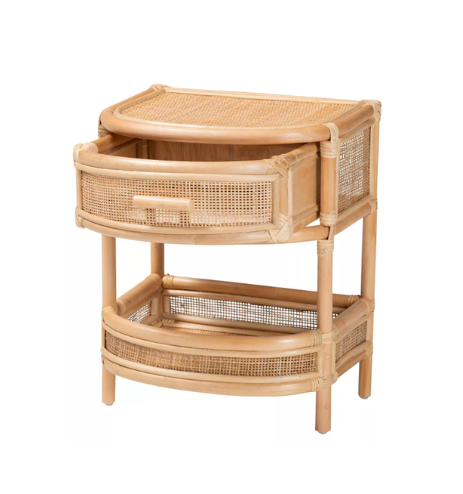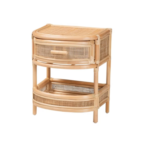 Premium Natural Rattan Bedside Table Handcrafted Nightstand with Drawer and Open Storage Shelf for Bedroom or Living Room