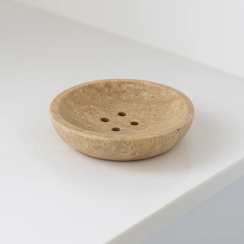 waterproof, Eco-Friendly, self drain, 100% Natural Travertine Stone, Handmade Polished Smooth Surface, Oval with Drainage Slot Design, Beige / Cream Natural Stone Tone, Modern Minimalist Luxury Bathroom Accessory, Long-Lasting and Scratch Resistant, ustainable and Natural Material, Prevents Soap from Melting Quickly, Unique Handmade Stone Craftsmanship, Suitable for Soaps, Sponges, Small Accessories, Stays Stable on Countertop, Easy to Clean and Washable, Bathroom, Washbasin, Kitchen, Spa, Hotels, Resorts, Premium Hotel and Villa Bathroom Decor, Available in Sizes, Shapes, and Colors, Solid Heavy Stone for Stable Placement, Each Piece Has Natural Stone Veins and Texture, Withstands Warm and Moist Conditions, Non-Toxic, Natural, Eco-Conscious, Ideal for Daily Use, Gifting, and Luxury Bathroom, Luxury modern bathroom accessory, Eco-friendly and highly durable, Smart drainage slot design, Multi-purpose daily use