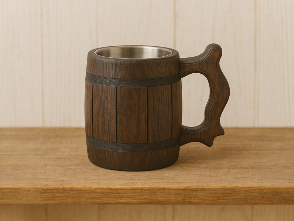 Premium Natural Wooden Beer Mug with Handle and Steel Insert | Rustic Handmade Wood Beer Tankard for Beer & Ale
