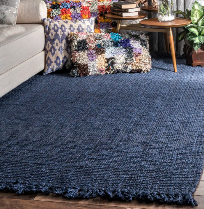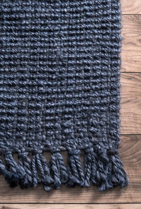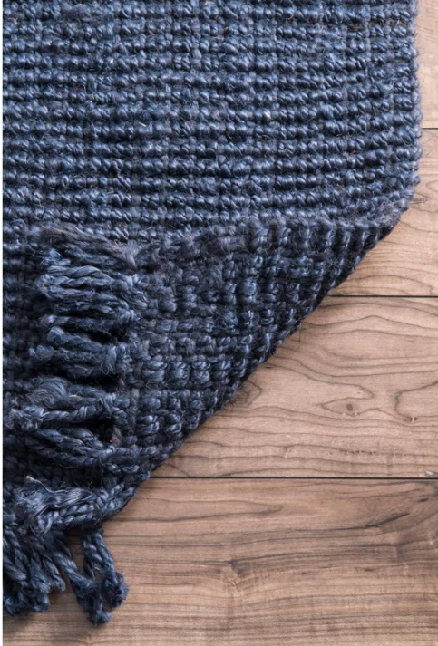 Premium Navy Blue Handmade Farmhouse Jute Rug Natural Fiber Collection with Tassels Area Rugs & Sets