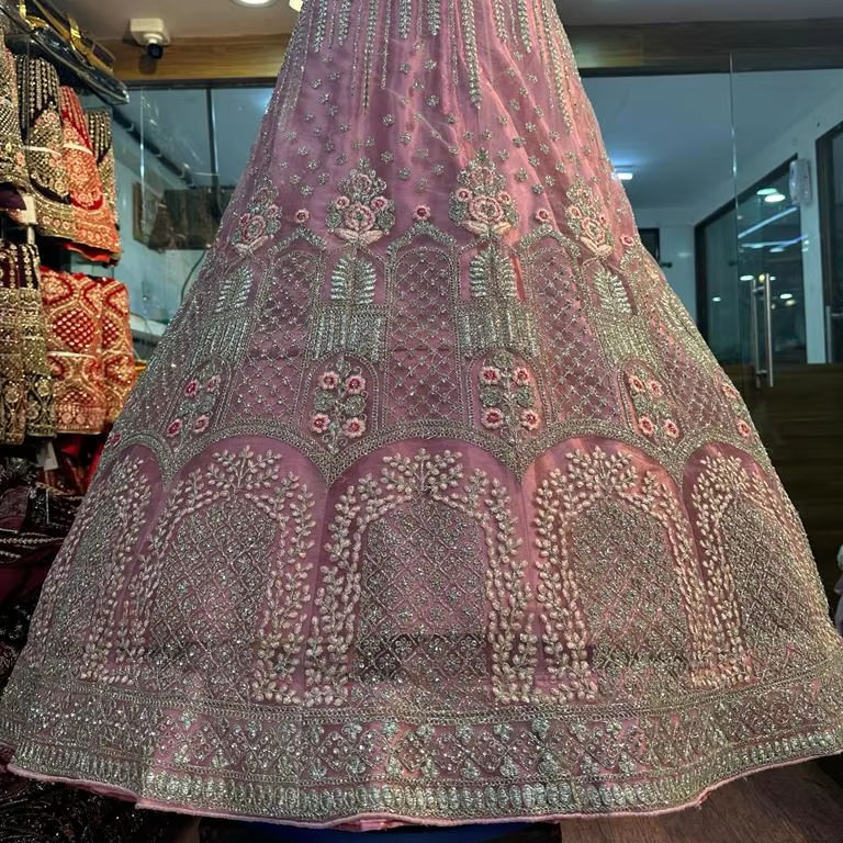 Premium Net Lehenga with Heavy Jarkan Embroidery 3M Flair and Designer Dupatta Set for Export and B2B Fashion Garment Buyers