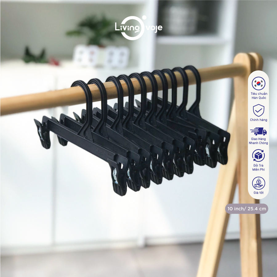 Premium PP Flexible No Rubber Pads 10-Pack 12-inch Plastic Clothes Hangers Clips Clothing Organizer Hooks Wardrobe Space Saving