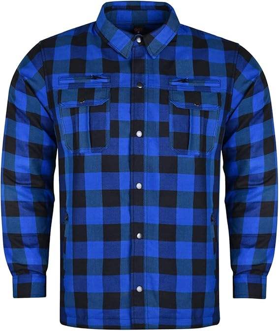 Premium OEM Men's % Cotton for Reinforced Breathable Flannel Biker Shirt Water-Resistant Plaid Motorbike Riding Jacket