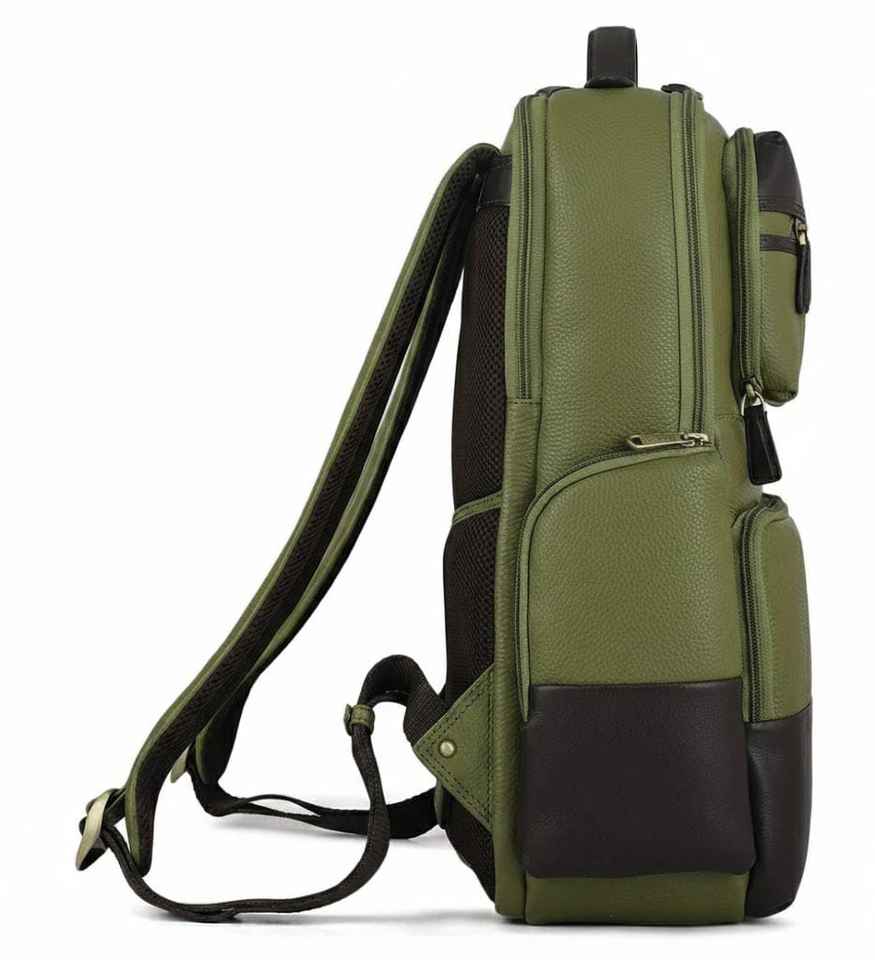 Premium Olive Green Brown Two Tone Leather Backpack Men Vintage Travel Rucksack Large Laptop Bag Business Office Daypack USA