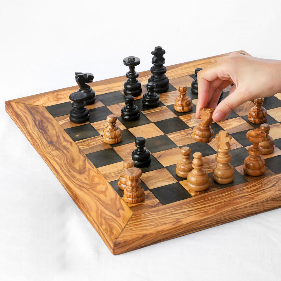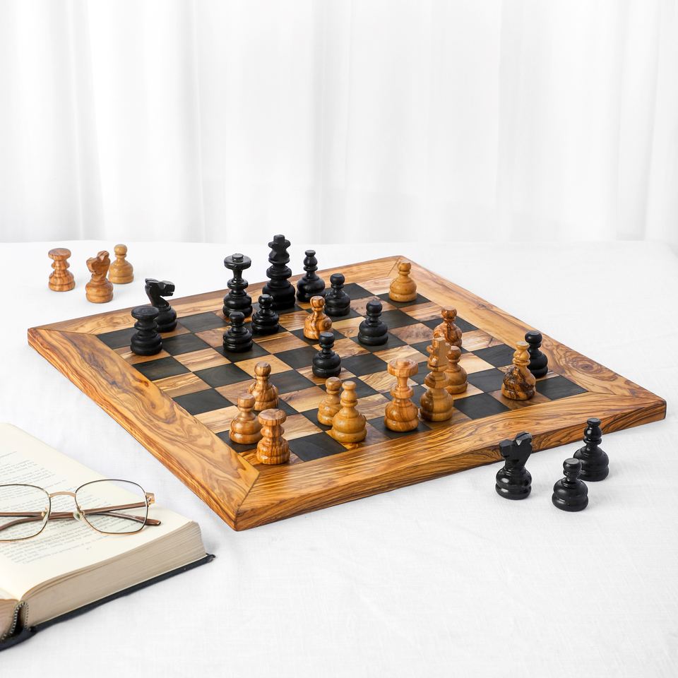 Premium ArtisRaw Mediterranean Vintage Olive Wood Chess Set Handmade Through-Carved Pieces Antique Imitation Design Business