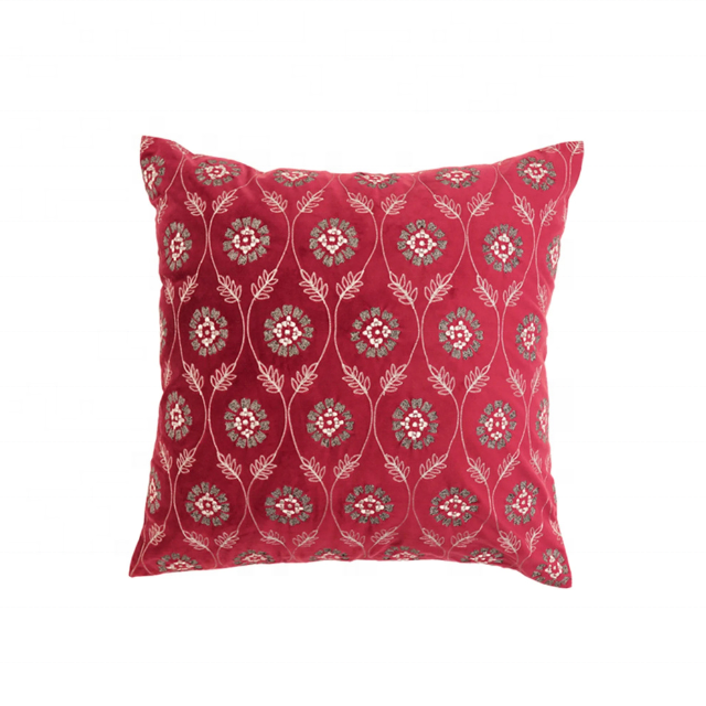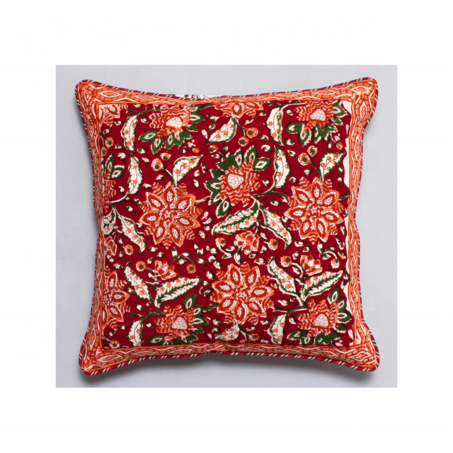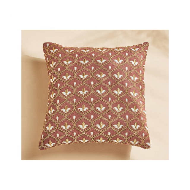 Premium Orange Jungla Leaves Floral 100% Cotton Embroidered Rustic New Arrival Soft 16x16 Inches Perfect for Wholesale Cushions