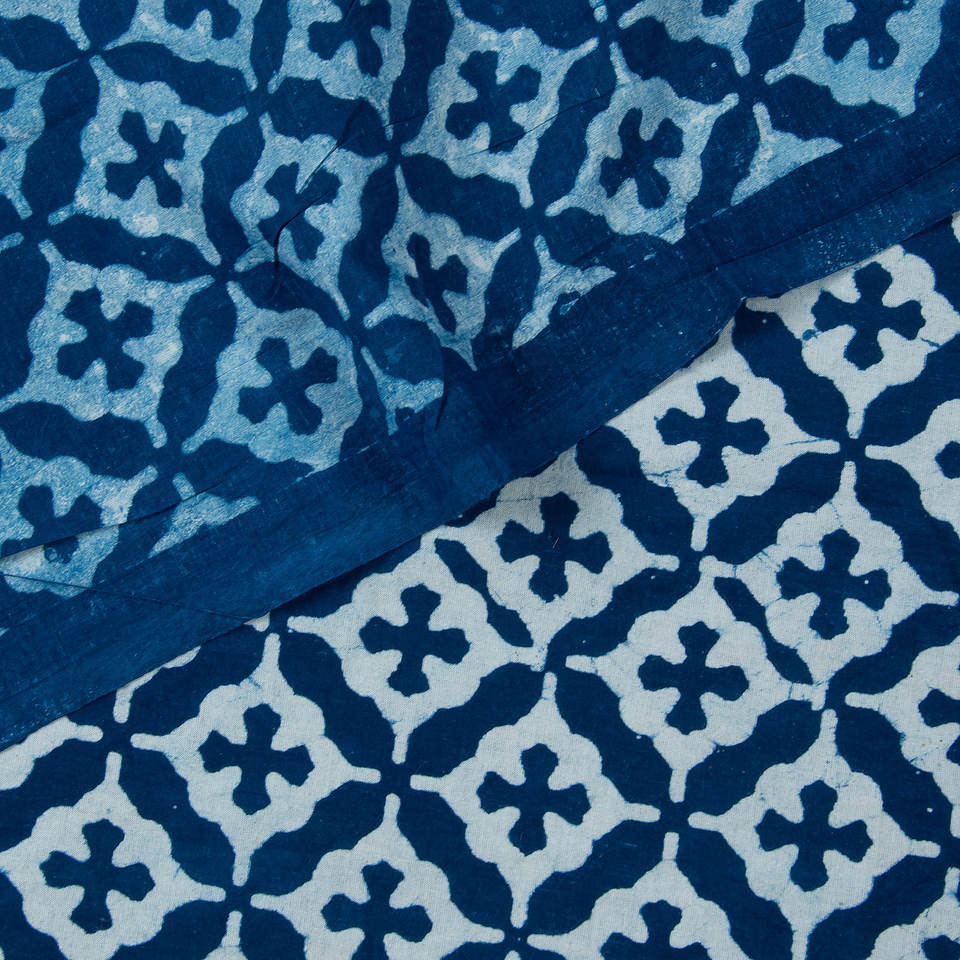 Premium Organic 120gsm Combed Cotton Fabric Eco-Friendly Chic Hand Block Woven Indigo Cross Pattern Curtains Suit Girls' Dresses