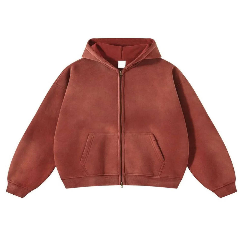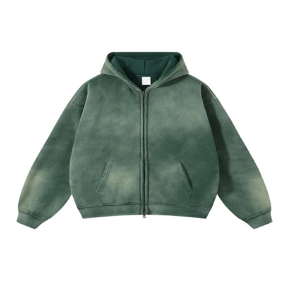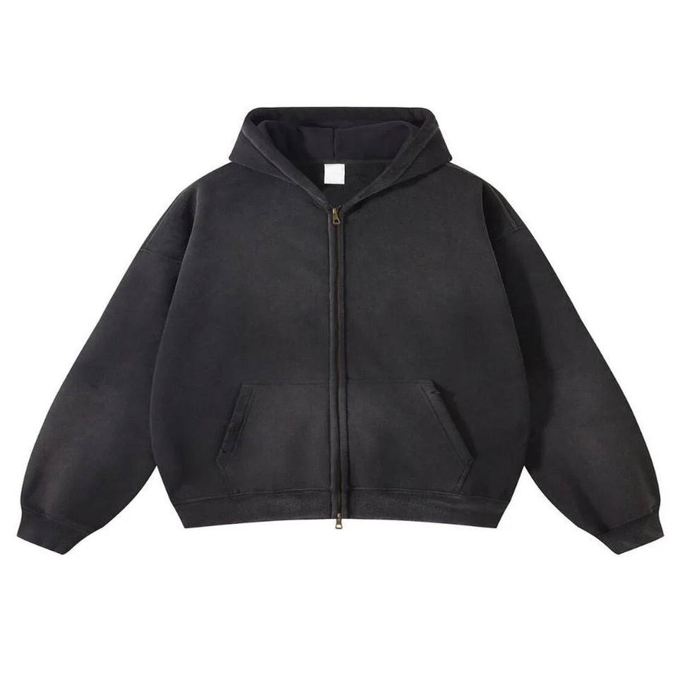 Premium Oversized Black Zip-Up Hoodie Streetwear Essential Casual Long Sleeve 100% Cotton Drop Shoulder Black Zip-Up Hoodie