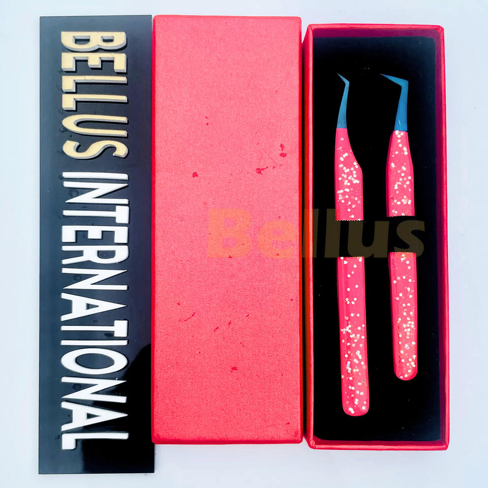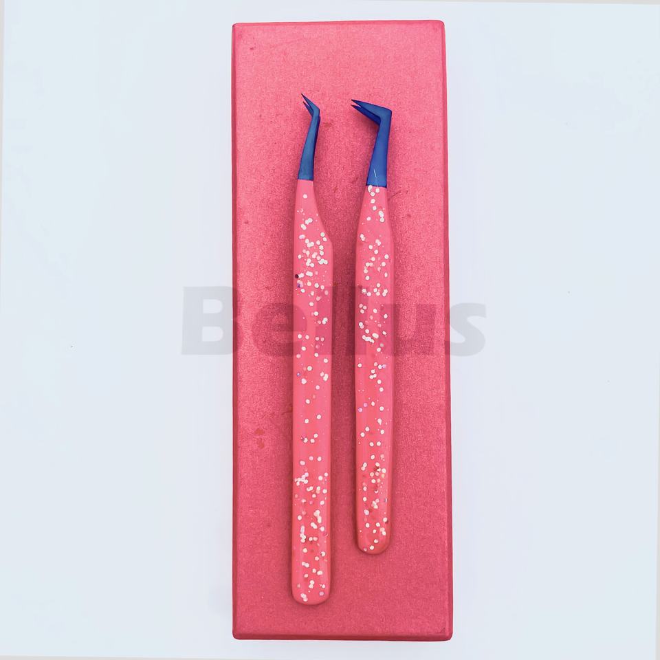 Premium Pink Glitter Coated Eyelash Tweezers Set Sustainable Steel Tools for Volume Classic Curved Straight All Tips Eyelash