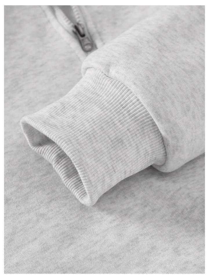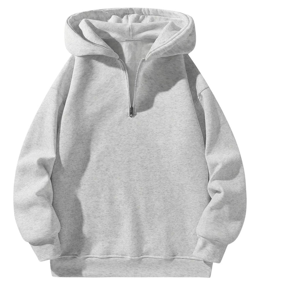 Premium Plain Grey Men's 100% Cotton Fleece Half Zipper Pullover Hoodie Winter Quick Dry Breathable Vintage Sports Jacket