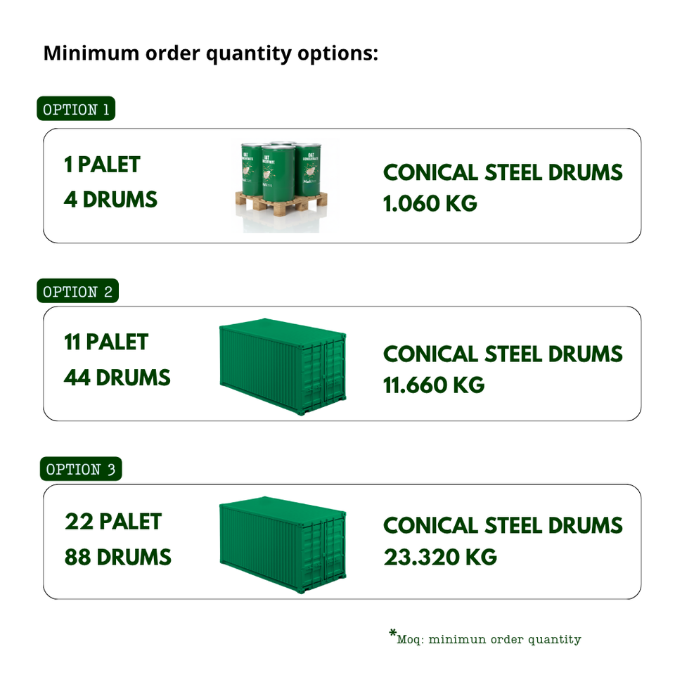 1 kg of oat concentrate produces 10 L of oat milk (ready-to-drink)
