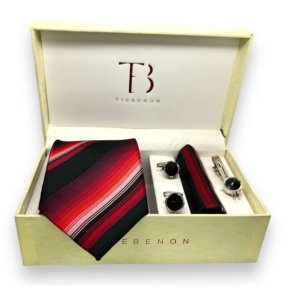 Premium Polyester and Silk Tie Combo with Red Gradient Stripe Gift Boxed for Gifting