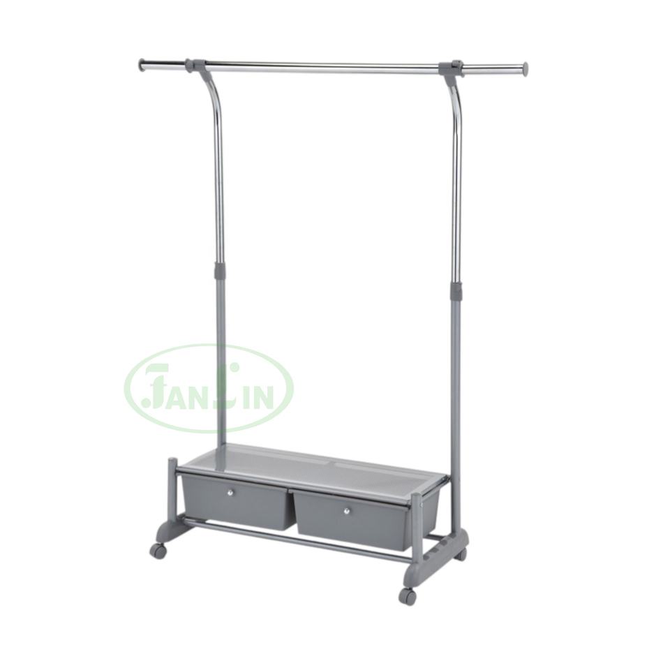 Premium Portable Rolling Single Garment Rack with Dual Storage Drawers Adjustable Hanging Rod Closet Organization Home Entryway