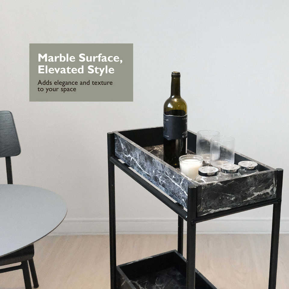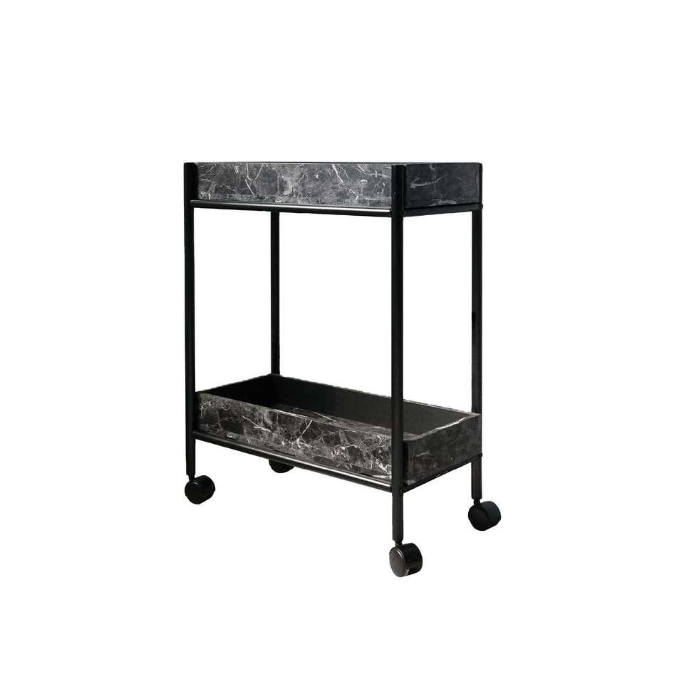 Premium Powder Coated Metal Frame Storage Unit Double Layer Laminate Decking Portable Tool Organization Cart