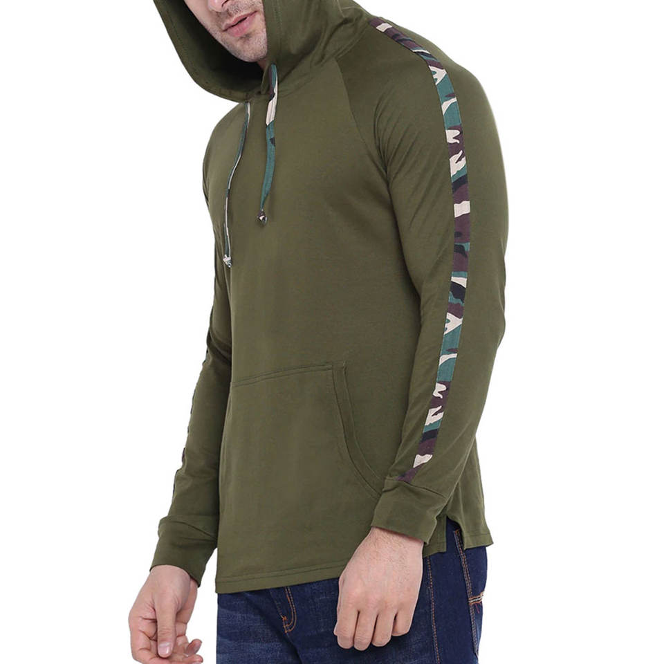 OEM Custom Men Hoodie Green Raglan Sleeve Camo Side Panel Lightweight Fleece Pullover Factory Wholesale Low MOQ Bulk Hoody