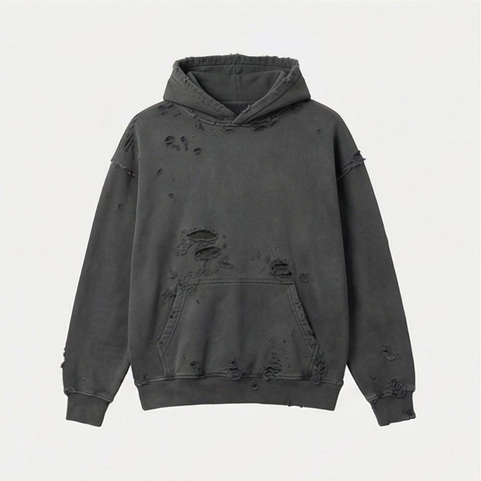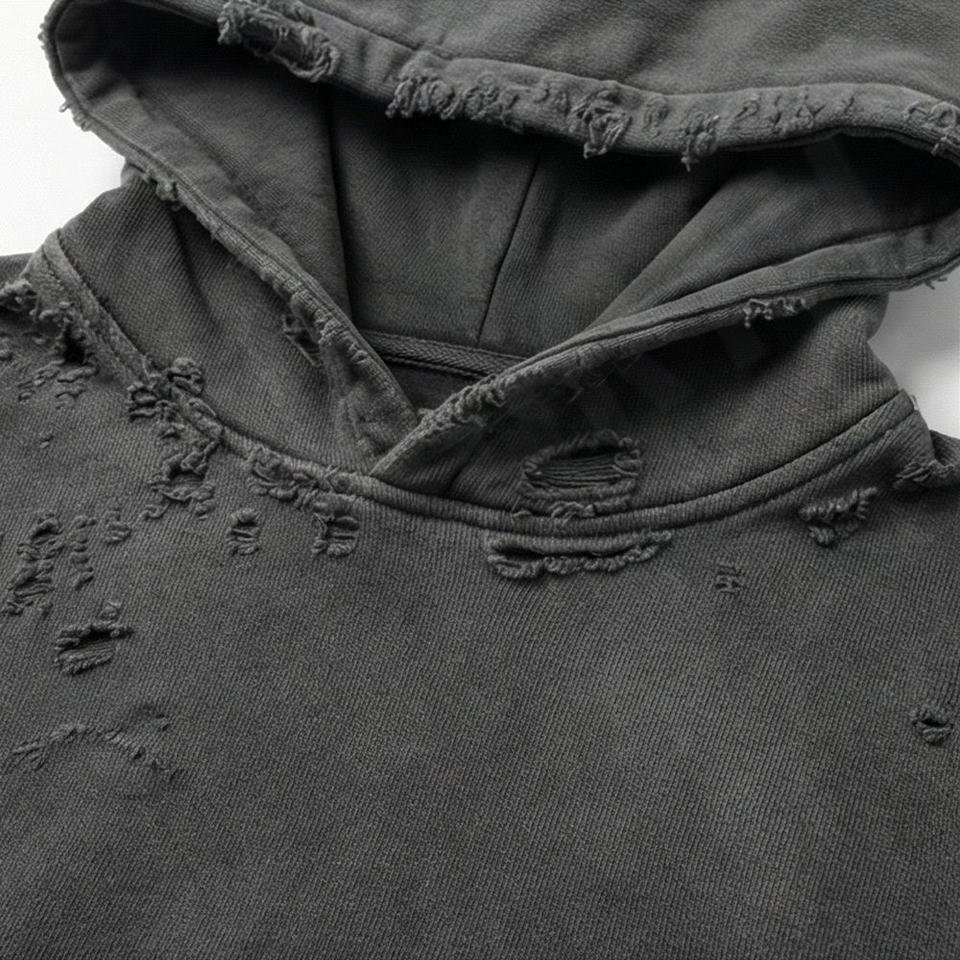 Premium Pullover Streetwear Acid Wash Cotton Hoodies No Drawstring Custom Vintage Distressed Sweatshirt Men Wholesale Apparel