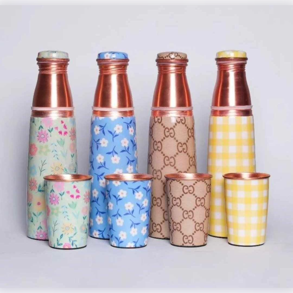 Premium Pure Copper Water Bottle in custom Printed Patterns Plain Design for Storage & Drinking, 950 ML Christmas Gift