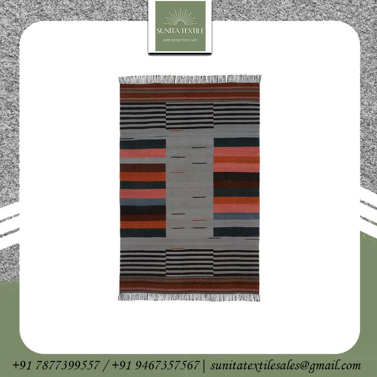 Premium Quality 100% Cotton Hand Braided and Woven Rug Embroidered with Abstract Jacquard Design for Living Room